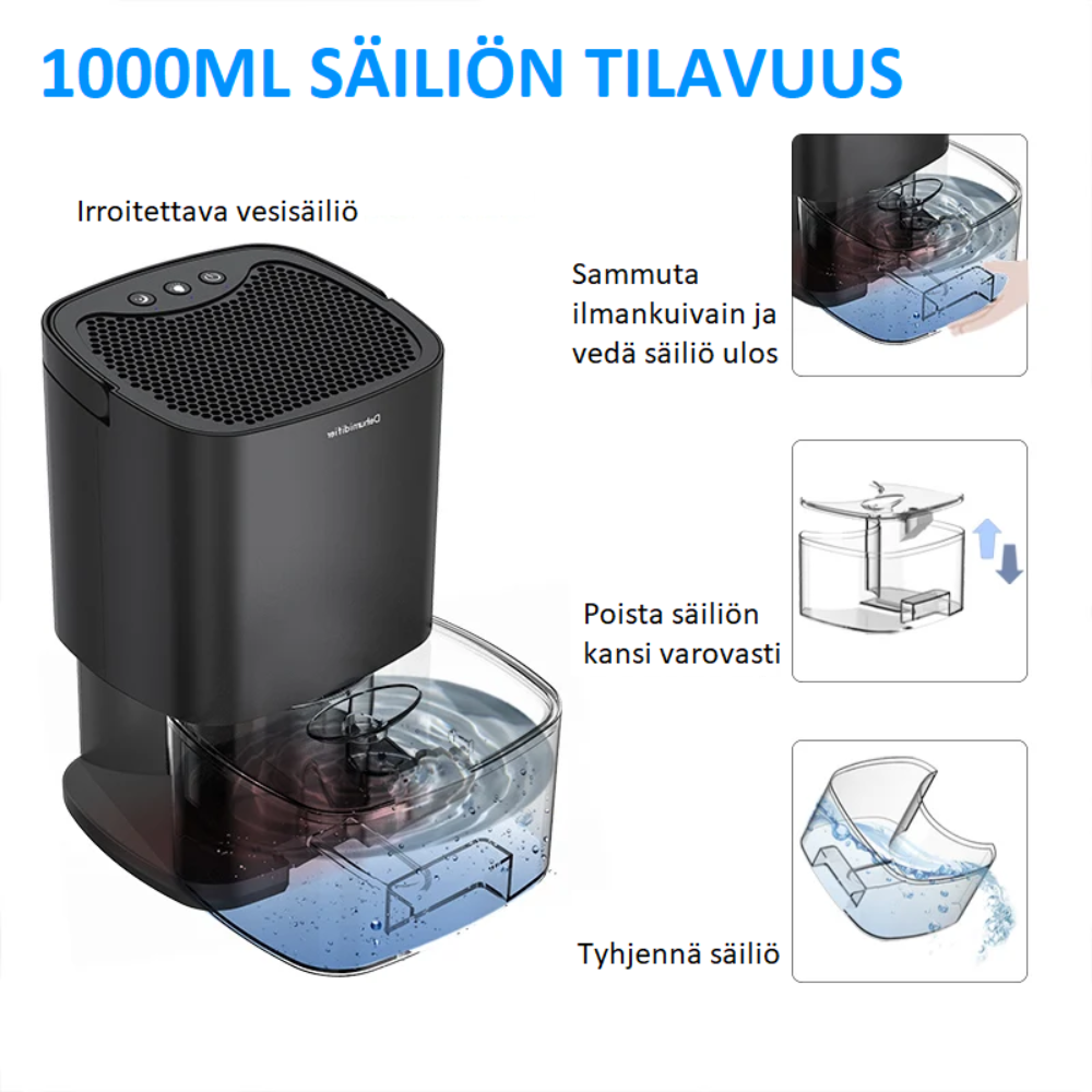 Olitpa sitten kosteassa kellarissa, kylpyhuoneessa tai makuuhuoneessa, ilmankuivain tekee työnsä vaivattomasti.