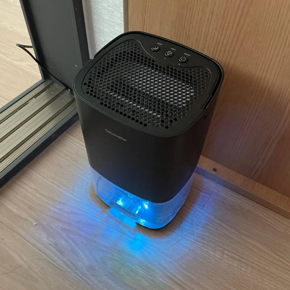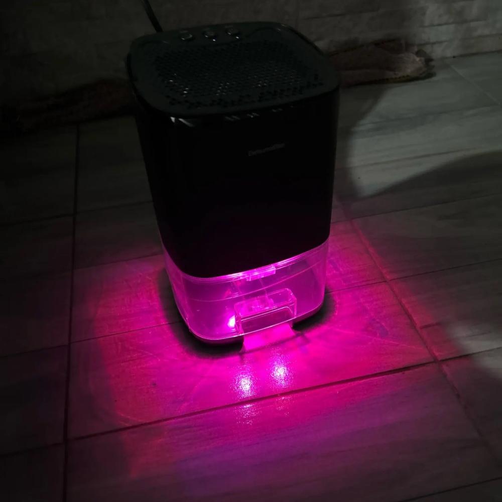 Tämä ilmankuivain sulautuu saumattomasti kodin sisustukseen sen modernin muotoilun ansiosta. Samalla voit käyttää valoa ja valita muutaman eri valon värivaihtoehdoista