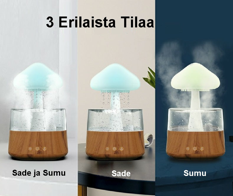 Sadelamppu toimii myös diffuuserina, levittäen huoneeseen lempeitä tuoksuja, mikäli käytät tuoksuöljyjä. Yhdistä sateen rentouttava tunnelma ihanan aromaterapian kanssa ja luo olohuoneestasi tai makuuhuoneestasi henkilökohtainen keidas.
