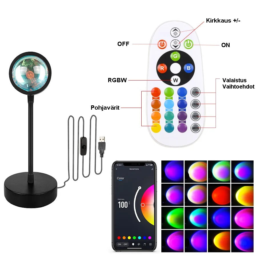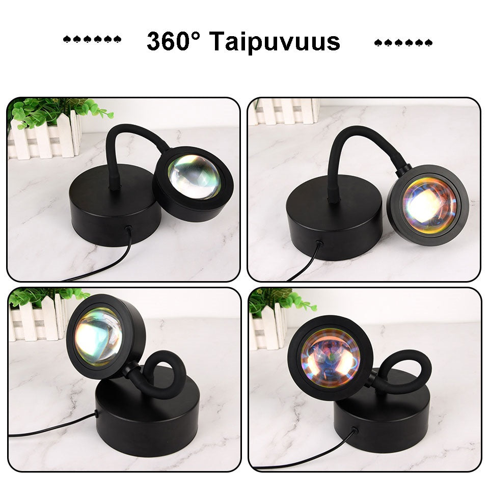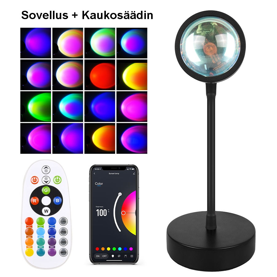 Auringonlaskulamppu on täydellinen lattiavalaisin, joka sopii myös makuuhuoneen, olohuoneen ja ruokailuhuoneen tunnelman luojaksi. Ota vaikka tyylikkäitä ja taiteellisia valokuvia, rajanasi vain mielikuvitus!