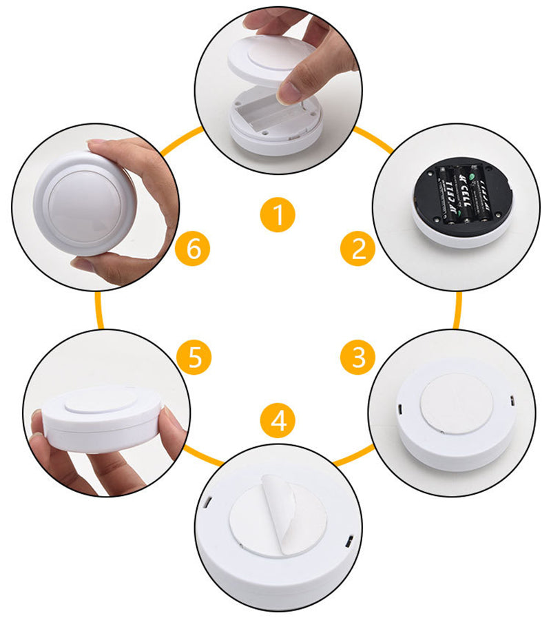 Lamppujen takana on teippitarra, jolloin voit kätevästi lätkäistä ne mihin tahansa pintaan. Asennus on nopeaa ja jäljetöntä - ei tarvetta reikien poraamiseen.